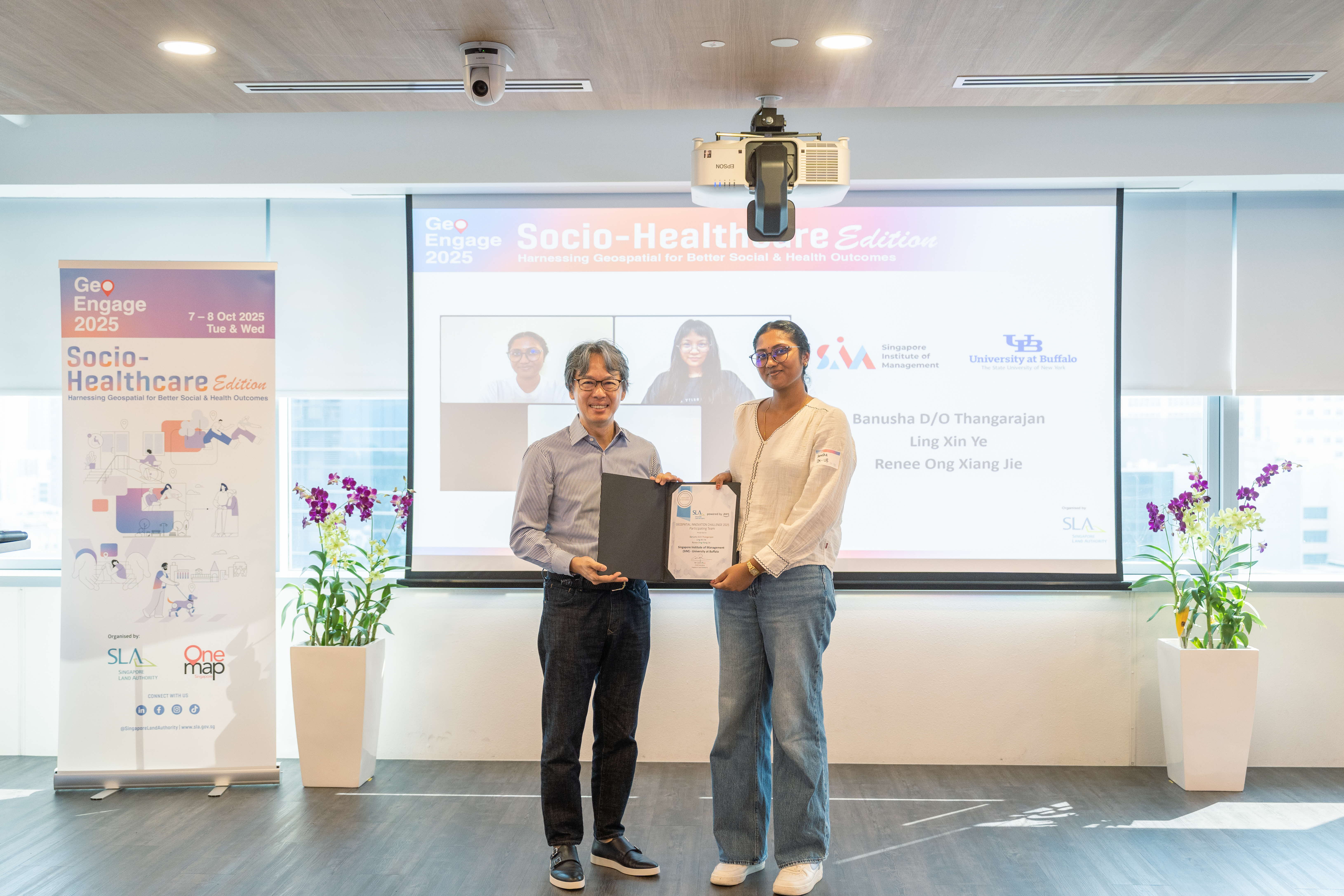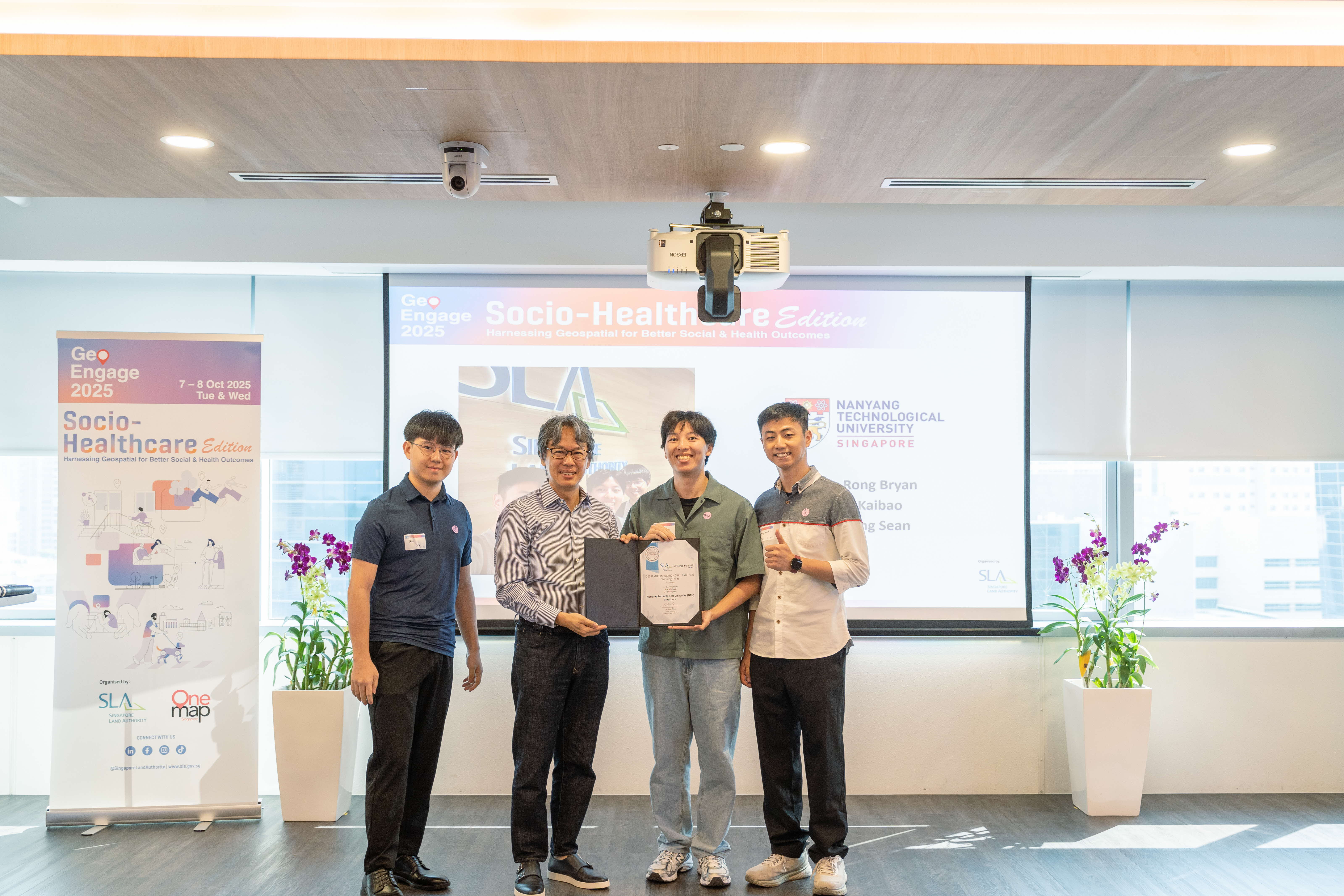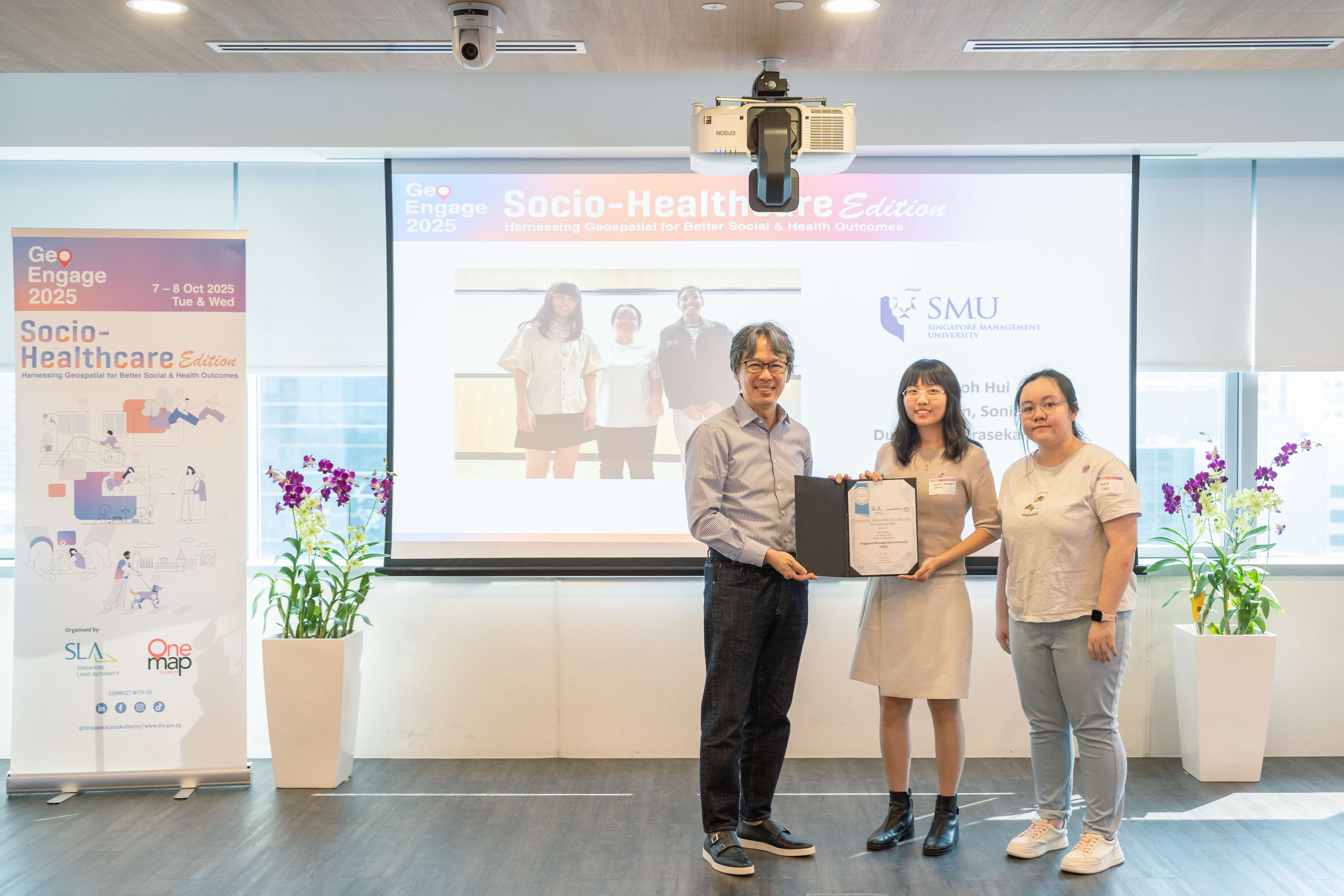 A highlight of the opening session was the award presentation for the Amazon Web Services (AWS) - SLA Geospatial Innovation Challenge – which invited students from Singapore’s IHLs to reimagine how OneMap and geospatial insights could address real-world socio-healthcare issues.