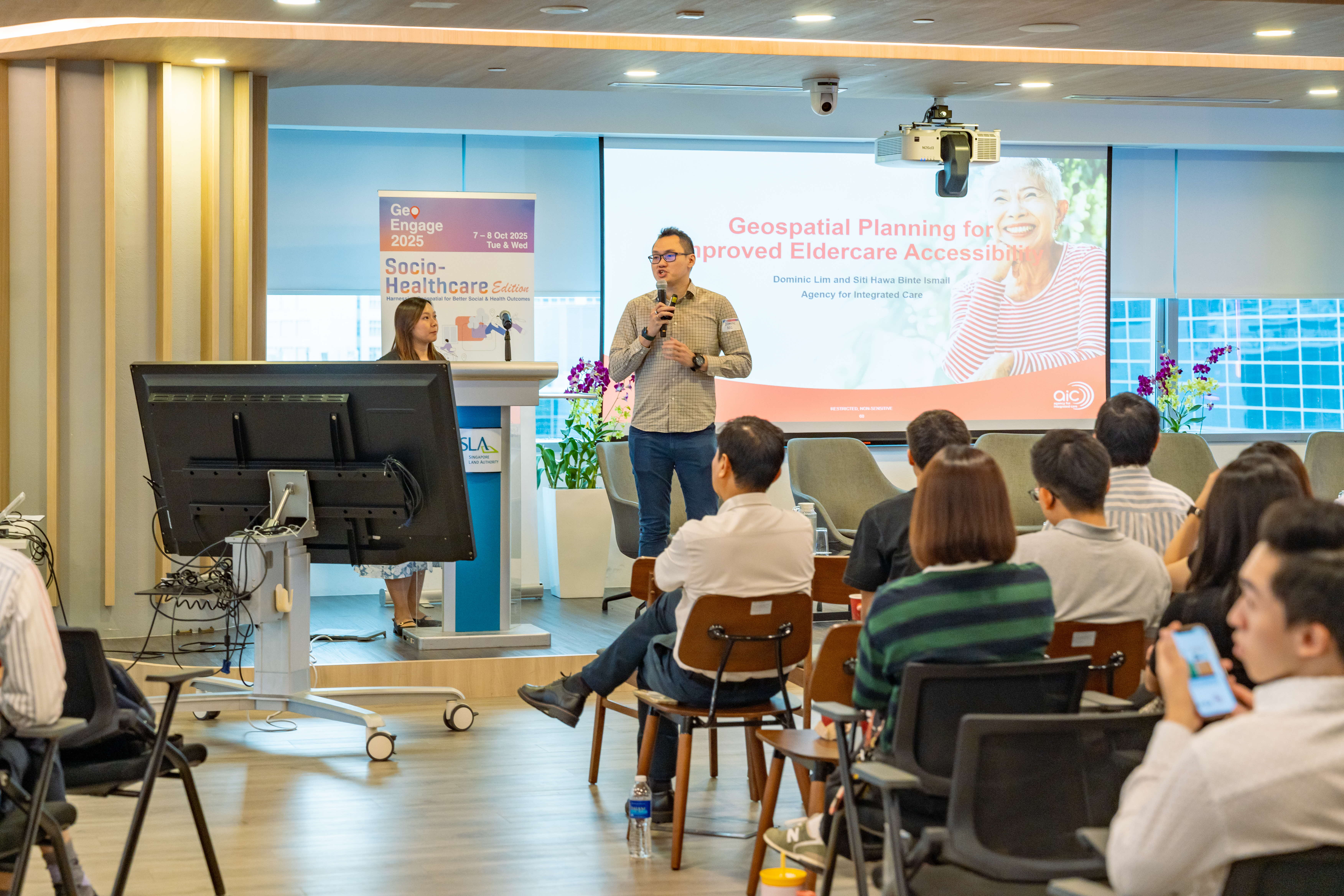Mr Dominic Lim, Head of Planning and Policy-Operations, and Ms Siti Hawa Binte Ismail, Assistant Manager from the Strategy, Research and Data Division at the Agency for Integrated Care (AIC), presented their community asset mapping solution This visualisation tool is transforming how AIC approaches senior care by optimising service planning, delivery and placement to ensure every senior age well and thrive in their community.