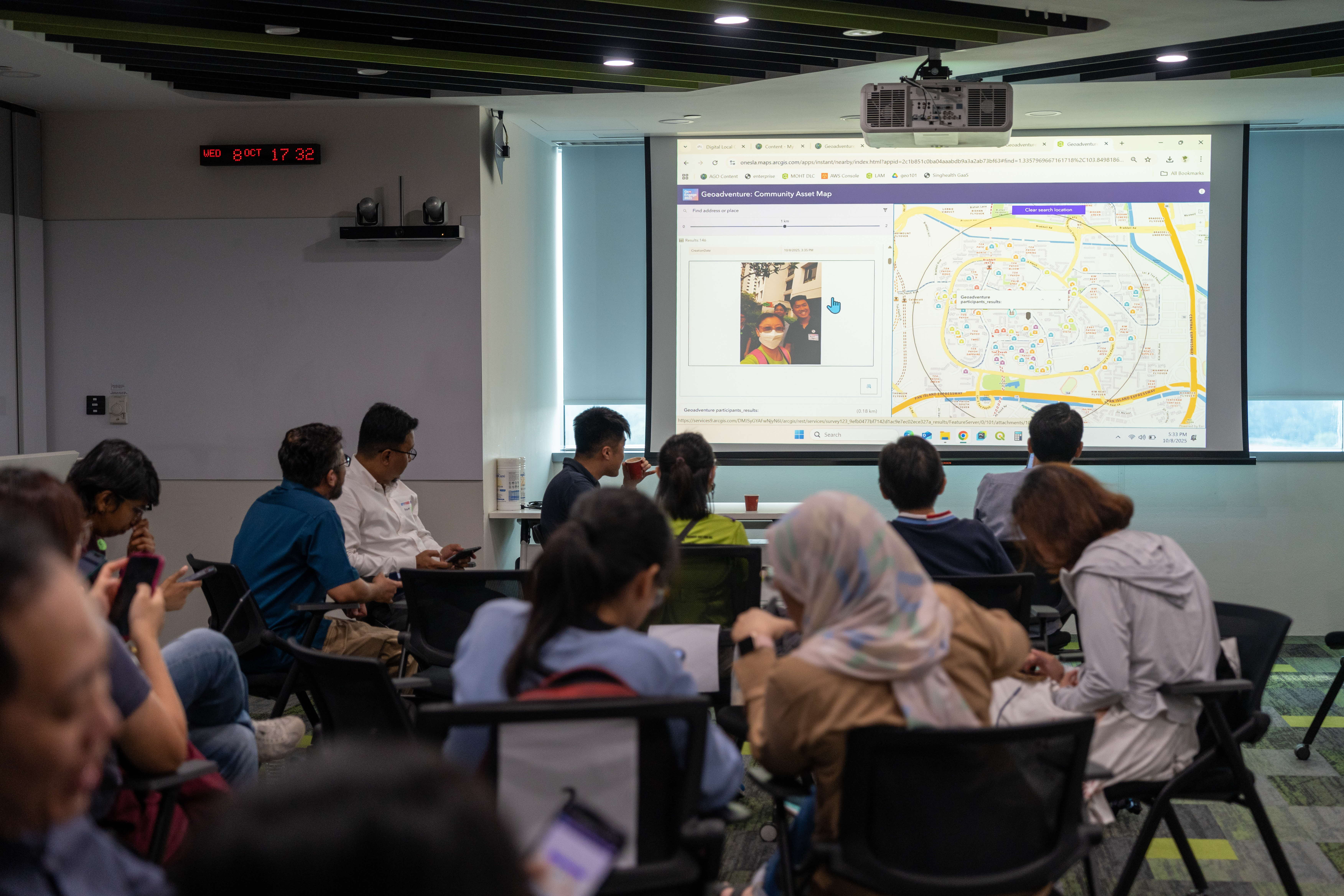 In day two’s GeoAdventure Workshop, participants got to experience how geospatial technology connects to our daily lives first-hand – with a foray outdoors! They ventured into the heartlands to ‘collect’ points of interest using the Survey123 app, and then watched their data come alive on a map back at Revenue House.